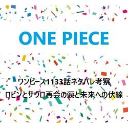 「ワンピース1133話」、ご覧になりましたか?22年の歳月を経て、ロビンとサウロが再会を果たす感動的な瞬間に、多くの読者が胸を熱くしたことでしょう。 かつてオハラの地で生き別れた2人が、長い苦難の末に再び向き合う――その […] ワンピース 考察 2024/12/14 16:40