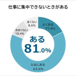 株式会社ビズヒッツは、働く男女500人を対象に「仕事に集中できない理由に関する意識調査」を実施した。 500人の働く男女に「あなたは仕事に集中できないときがありますか?」と尋ねたところ、「よくある(17.4%)」「たまにある(63.6%)」を合わせ、81.0… MENTALW 2021/05/21 10:59