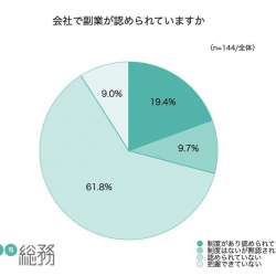 日本で唯一の総務専門誌『月刊総務』を発行する株式会社月刊総務は、全国の総務担当者を対象に「副業に関する調査」を実施し結果を発表した。 会社で副業が認められているか尋ねたところ、「制度があり認められている」は19.4%にとどまり、「認められていない」が61.8… MENTALW 2021/12/17 06:48
