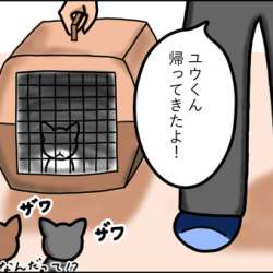 途中からの方はこちらからどうぞ❕『ボロボロの子猫①』初めての外泊休みの前日を定時上がりにして、ユウを迎えに行きました。久しぶりの再会に、子猫たちがどんなリアクションをするのか楽しみです。子猫たちに負けずに、はしゃいでいたツマでした。もしかして一番はしゃい... クロスケのねこまんが 2021/02/07 08:07