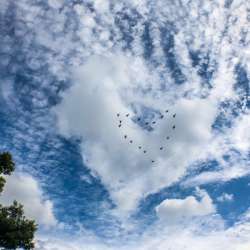 雨の日が続きますね。先日、ほんの束の間の晴れた時間に新宿御苑に行きました。するとどうでしょう。見上げるとハート型の雲♪それに鳥まで♪というのは嘘で下の画像を加工しました。ね、惜しかったですよね。あともう少しでそんな感じだったのに。。。たまにはこんな遊びも... テレビ編集マンの癒し系フ… 2017/10/22 19:45