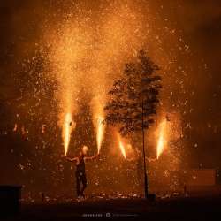 今年も流鏑馬とこれに合わせて里帰りしてきました。 宝物殿前の会場はこんなかんじです。 今年は台風の影響で風が強い。 さあ、始まりです。 昨年は寄りのカットが多かったので今年は花火のサイズが解るような撮り方をしてみました。 火柱の高さ、分かりますか… 鎌倉への付箋 2019/08/19 19:50