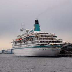 最近、大さん橋に初入港する客船を撮っている。 2019年、横浜港に初入港する2つ目の客船「アルバトロス」。 バハマ船籍で、ドイツの「フェニックス・ライゼン」が運航。 1970年代の建造。曲線の美しさがある。 特に船尾。今日はこのお尻を見に来たのだ。 カラーリングも上品だ… 鎌倉への付箋 2019/03/24 07:33
