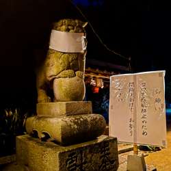 昨日のマスクをしていた狛犬は、輪越しの明けた今日もマスク姿なのかな? 田舎で娯楽 2020/08/01 15:00