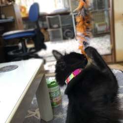 新しい猫じゃらし、チョロくんからやっとなっちゃんに交代。空中捕獲が苦手ななっちゃんは捕まえられるかな!? 付録はちゅ~るをたくさん買ったプライムデー 猫小との生活 2019/07/18 04:32