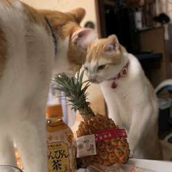 またスナックパインを買ってきました。食卓の上に置いていたら、なっチョロがやってきてクンスカ匂いを嗅いで・・・ガブっ!え?何噛んだ??www 猫小との生活 2019/07/24 05:25