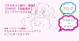 - 2023/11/07 17:00ババコンガ(鋼我)さんのやる夫スレ作品「ヤルオはオッパイハーレムPTに入ってしまったようです」の感想紹介を記事にしました。
