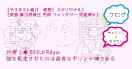 ◆l872UrR6ywさんのやる夫スレ作品「彼を転生させたのは善良なギリシャ神である」の感想紹介を記事にしました。