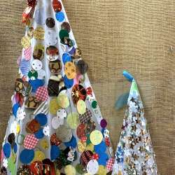 先日お見せした、小さめで星を散りばめたツリーと 同時に作った、まんまるを散りばめたほうのツリー。 半立体タペストリー、というふうに壁面に飾るタイプ。 小さいさんたちとたくさん貼ったのを飾っていたのを クリスマスが終わって、記録しておこうと持って帰ってきた。 毎年、何かしら考えて、あっという間に出来る… ガジャのねーさんの 空を… 2024/12/28 06:08