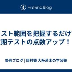 定期テストが近づいてきて すでにテストの範囲表が 配られてる中学もあって。。。 という時期になりましたよ? さてそこで 保護者の皆様に質問です お子さんのテスト範囲は ご存知ですか??? 知ったからと言って 教えてくださいね! とは僕は思ってないんよねー 中学生にもなれば 教えてあげられることなん… 塾長ブログ 岡村塾 | … 2024/09/10 20:18