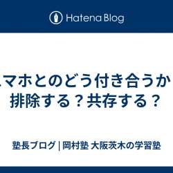 スマホを使用時間は年々増加して 子どもの学力に何らかの影響を与えてるのは もはや間違いないやろね さて、ではどうするか?やね? スマホは排除する! が正解なのか? スマホと共存する! が正解なのか? 結局は 使い方しだい 使わせ方しだい な気がしません? 1日にスマホで SNSや動画などを 1時間… 塾長ブログ 岡村塾 | … 2024/09/07 21:15