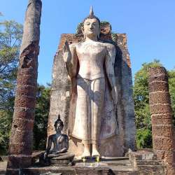 スコータイ歴史公園の西にある高さ200mの丘の上にある「 ワット サパーン ヒン」にはスコータイの街を見渡すかのように立像がそびえ立っています。 地図 小高い丘を登って サパーン ヒン( สะพานหิน) とは石の橋の意味になり、 丘の麓から立像まで300mの斜面の石畳を登って行きます。 しかし、… トムヤムの国から 2026/02/15 08:05