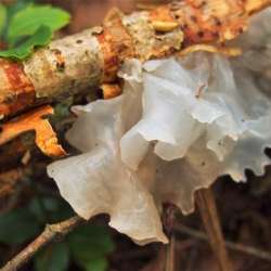 10月1日撮影折れて朽ちた地面の枯れ枝に生えていました。広葉樹の森のなかではよく見かけるキノコ。名前の通り真っ白に透き通った木耳です。それほど珍しくはないにしても一度に取れる量はほんのひとつまみ。それでも癖がなくおいしいキノコなので見つけたら必ず持ち帰っています。さっと湯がいて酢の物に。ほんとにちょ… 音・風・水 2018/10/20 22:14