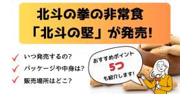 北斗の拳初のコラボ非常食「北斗の堅」の気になるパッケージと中身、販売場所、おすすめ5ポイントについてご紹介します。