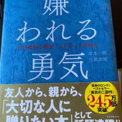 タイトル 『嫌われる勇気 自己啓発の源流「アドラー」の教え』 著者:岸見一郎 古賀史健 発行所:ダイヤモンド社 ネタバレなどは含まず、 あくまで読んだ個人の感想を書いていくが、 普段本を読まない俺でも少しずつ読んで1週間ぐらいかな? 時間の空いた時に読んでいたことが多いが、 細かく… Icent-日常の1コマ… 2020/05/05 15:57