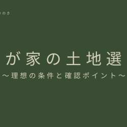 家を建てようとするとき、土地選びって難しいですよね。 本当にここでいいのかな? と不安になるもの。 わが家も土地選びをするときに色々な場所を見に行きました。 そして、迷走しました。(笑) そこで今回は、わが家が家づくりを […] くらしのゆりのき 2023/09/18 23:33