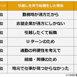 株式会社ビズヒッツは、引越しを伴う転職経験がある500人を対象に「転職で困ったことに関する意識調査」を実施し結果を発表した。 「引越しを伴う転職の理由」を聞いたところ、1位は「勤務地が遠方だから」でした。 1位と僅差の2位は「志望企業が遠方にしかない」で、3… MENTALW 2021/08/13 08:10