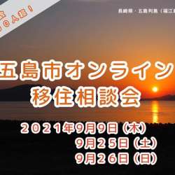 長崎県五島市(五島列島)の「オンライン移住相談会」が開催される。 テレビ会議システムZOOMを使って、自宅などから気軽に相談できます。 五島市移住支援員2名が参加者1組の相談をお受けする個別相談形式です。 <日時> 2021年9月9日(木曜日)、25日(土曜… MENTALW 2021/08/31 06:00
