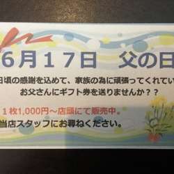 今月6月17日日曜日は『父の日』です ! ! ! 皆さんは、お父さんへのプレゼントをもう決めましたか ? ? ? リラクゼーションEternalでも父の日プレゼント用としてギフト券を1,000円~販売しています('ω')ノ ぜひお父さんに、普段伝えられない感謝の気持ちと一緒にEternalの最高の癒… 頭痛のことなら整体リラク… 2018/06/08 14:52