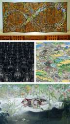 写真は、上、会田誠「紐育空爆之図」1996、中左、杉本博司「仏の海001」、中右、山口晃「島尽鐵道圖」2017、下、松井冬子「浄相の持続」2004 - 2024/10/03 22:39【現代アートの見方】