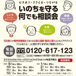 東京司法書士会は、一般市民からの相談を受け自殺防止をはかるため、電話による「いのちを守る何でも相談会」を開催。 相談会は、当一般社団法人東京精神保健福祉士協会及び一般社団法人東京公認心理師協会の連携による相談会であり、司法書士のみならず精神保健福祉士又は公認… MENTALW 2020/09/14 11:36