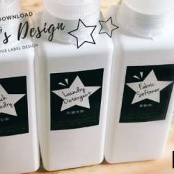 黒い背景に白い大きな星の詰め替えボトル・スプレー用ラベルです。星の中に英語名を手書き風筆記体でかわいくデザイン […] 『おしゃれ★収納ラベル』… 2018/12/20 14:59