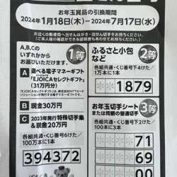 にほんブログ村にほんブログ村今日は3月並みの気候だったようで暖かな日でした2024年のお年玉付き年賀はがきの当せん番号が決まったようで郵便屋さんから印刷物を頂きました。1等は電子マネーや現金など~100万... ダニエルとキティのトイマ… 2024/01/19 02:09