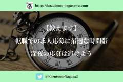https://kazutomo-nagasawa.com/?p=4992 - 2024/01/21 12:39転職活動での企業への最初のアクション。