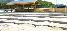 出雲稲佐の浜、出雲大社と深く結びついているこの浜には新しく整備された石段にたった1個だけハート形の石があるんですよ。見つけてきました。