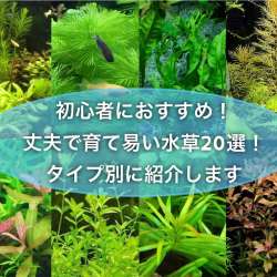 こんにちは!かつやんです! 水草水槽に挑戦したい方やアクアリウム初心者向けに『丈夫で育てやすい水草をタイプ別にご紹介』したいと思います! 水草は豊富な種類があり、飼育が難しいものや簡単なものと違いがあります。 また、水草は水槽レイアウトに使用する際、前景・中景・後景向きの物等様々なタイプがあります… たなごGo! 2021/05/24 12:06