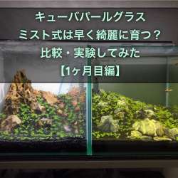 こんにちわ!かつやんです! キューバパールグラスを育てるのに現在では『ミスト式』が主流と言われています。 ミスト式はパールグラスとの相性が良く、緑の絨毯を作るなら苔問題やCo2不要で美しく早く育つ『ミスト式』が人気です! そこで今回はミスト式と普通にパールグラスを植えただけの水槽とどっちが綺麗に早… たなごGo! 2021/05/15 12:00