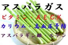 アスパラにはビタミンA,C、Eが含まれています。どれも抗酸化作用を持つビタミンで、動脈硬化予防やガン予防の相乗効果が期待できます。