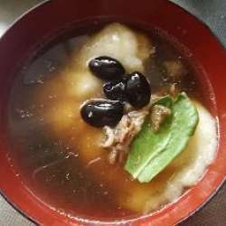 我が家のお雑煮です。丸餅に、あわせ味噌(のはずがなぜか写真ははすまし)具はシンプルにお肉と黒豆。香川県ではあんころ餅らしいですね。みなさんのお雑煮はどんなかんじですか?さて、4月から姫さま中学3年生... ひとりで楽しも。 2018/01/04 21:52