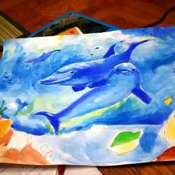 さて、今年もあの季節がやってまいりました。お盆といえば姫の美術の宿題。去年のテーマは「海と魚」こちら、某巨匠の絵をパクリすぎてボツにした作品。結局描きなおして提出したのがこちら正真正銘の完全オリジ... ひとりで楽しも。 2017/08/13 22:45