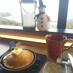 国道9号線沿いにある和田珍味本店さんのカフェにて日本海の絶景を眺めながらスキレットで提供されるパンケーキ和田珍味 のどぐろ一夜干焼きたてあつあつにたっぷりのシロップをかけてバターでいただきます。ウ... ひとりで楽しも。 2020/12/10 22:26