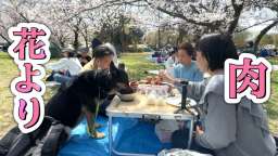 本日のタイトルは、「オババ特製弁当を持ってお花見に来たら、愛犬はやっぱり「花より肉」でしたw」です。