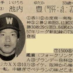 思い出のプロ野球選手、今回は 「 池内 豊 」 投手です 1970年代初頭から80年代中盤まで阪神など4球団に在籍し、サイドスローからの中継ぎ投手として当時のリーグ最多登板を果たすなど、タフなリリーフ投手として活躍しました。 【池内 豊(いけうち・ゆたか)】 生年月日:1952(昭… 続トラベルとかナントカ 2024/08/03 08:21