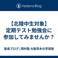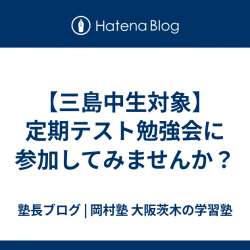 第1回定期テストに向けて 定期テスト勉強会を以下の日時で実施します 6/15(土)13:00〜22:00 6/16(日)13:00〜22:00 ✴︎夕方に1時間ほど食事休憩をとる予定です 無料で参加可能です! ただし学年により人数に限りがありますので お早めにお申込みを! 定員に達し次第締め切りま… 塾長ブログ 岡村塾 | … 2024/06/02 11:56