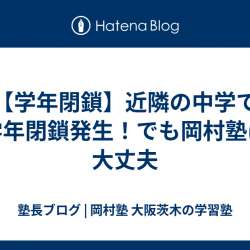 近隣の中学で 学年閉鎖 が発生 中学1年生が全員塾に来られない ん? でも岡村塾は大丈夫 授業を録画して 明日には配信するからね 遅れることなく 授業も受けられるし 宿題もできる 来週は普通に合流できる 何の問題もない 学年閉鎖 ? 全然怖くない まぁ今日はゆっくり休んでね 明日にでも動画見てねー… 塾長ブログ 岡村塾 | … 2024/01/23 18:54