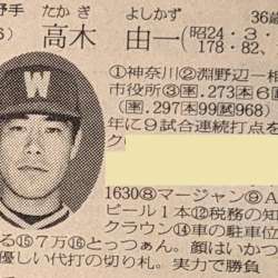 思い出のプロ野球選手、今回は 「 高木 由一 」 選手です。 市役所職員出身という異色の経歴でプロ入りしながら、「とっつぁん」のあだ名で知られたいかつい顔のユニークな選手で、昭和50年代を中心に大洋を支えた選手でもあります。 【高木 由一(たかぎ・よしかず)】 生年月日:1949(… 続トラベルとかナントカ 2024/01/15 23:22