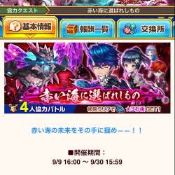 白猫プロジェクト 討滅士ガルガ~赤天霹靂~協力クエスト 討滅士ガルガ2の4人協力バトル【赤い海に選ばれしもの】が開催されました。期間は9月30日15時59分までです。 討滅士ガルガ2帰還編はこちら 討滅士ガルガ2激動編は […] オードリーのブログ 2022/09/10 22:20