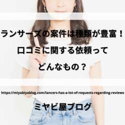 ランサーズで多く見かける口コミの依頼とは? 口コミ案件の依頼内容は、様々な種類があります。 アンケートでの口コミ募集 アンケートとして、口コミを募集するのが最も多い内容です。 使用したことがある健康食 ... Copyright © 2023 ミヤビ屋ブログ All Rights Reserved.… ミヤビ屋ブログ 2022/08/31 19:00