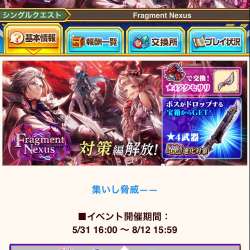 Fragment Nexus―フラグメントネクサス―対策編解放 対策編が解放されました。超難しいでクリアすると、宝箱のドロップ率が2.5倍になります。 フラグメントネクサス襲来編はこちら 神なる武器をもとめてフラグメント […] オードリーのブログ 2022/06/02 21:07