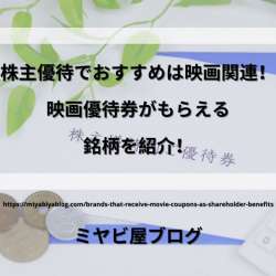 株主優待が受けられるオススメの映画関連銘柄! 映画関連の株主優待が受け取れる銘柄を5つ紹介します。 スバル興行【9632】 松竹【9601】 東映【9605】 東京テアトル【9633】 武蔵野興行【9 ... Copyright © 2022 ミヤビ屋ブログ All Rights Reserved.… ミヤビ屋ブログ 2022/05/13 19:00