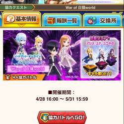 ソードアート・オンラインプロジェクト~Dear Best Friend~4人協力ウォーオブ白猫ワールド ソードアート・オンラインプロジェクト~Dear Best Friend~4人協力が開催されました。対象のコラボキャラ […] オードリーのブログ 2022/04/29 00:19