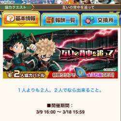 僕のヒーローアカデミアプロジェクト2人協力バトル ヒロアカコラボ2人協力バトルが開催されました。2体以下のパーティのみで出撃可能です。 ヒロアカコラボSTORY編はこちら ヒロアカコラボHERO編はこちら ヒロアカコラボ […] オードリーのブログ 2022/03/09 21:23