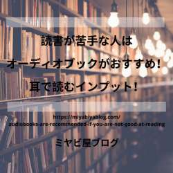 読書はした方がよいと言いますが、本を読むことが苦手です。 知識をつけたり、物語を楽しんだりしたい気持ちはあるのですが… 活字が苦手、時間が無いなどで読書に抵抗がある人は多いです。 読むことが難しいなら ... Copyright © 2021 ミヤビ屋ブログ All Rights Reserved.… ミヤビ屋ブログ 2021/02/06 19:57