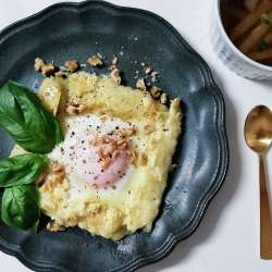 グリュイエールが冷蔵庫にある時に 必ず食べたくなるのが、ガレット。 残念ながらそば粉は常備していないので 高野豆腐を使ってガレット風にしてみた。 【材料】 高野豆腐 1個 片栗粉 大さじ2 グリュイエールチーズ 適量 くるみ 適量 卵 1個 水 100mL 塩 ひとつまみ ・グリュイエールと胡桃は… ツレヅレ食ナルモノ 2021/12/30 07:01
