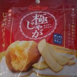 カルビーの、極じゃが、じゃがバター味。商品名を一行で書くと「じゃがじゃが」になって何か煩い感じがする。「極じゃが」と書いて「きわじゃが」と読む。当然、一発で変換できないのでその都度「極み」と入力してから「み」を消す。面倒臭い商品だ。「たどり着いた美味しさのヒミツは厚さ3.5ミリ※の極みカット。 ザッ… ポテトチップス! ポテチ… 2018/03/05 11:00