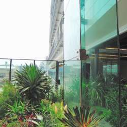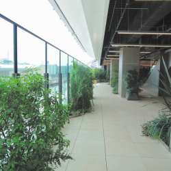 コスメやレディースの店が林立するショップ街を抜けると突然に明るい小さなプラザ的な空間に出る。 亜熱帯から熱帯に由来する植物たちとガラスの壁 この辺から再びスペースデッキに出て陽光を浴びつつ進む。 上の写真の右側はガラス張りで、これは以下の写真の通り、裏から眺めると水が伝って絶えず落下していくのがよく… MusicArena 2020/12/09 21:59